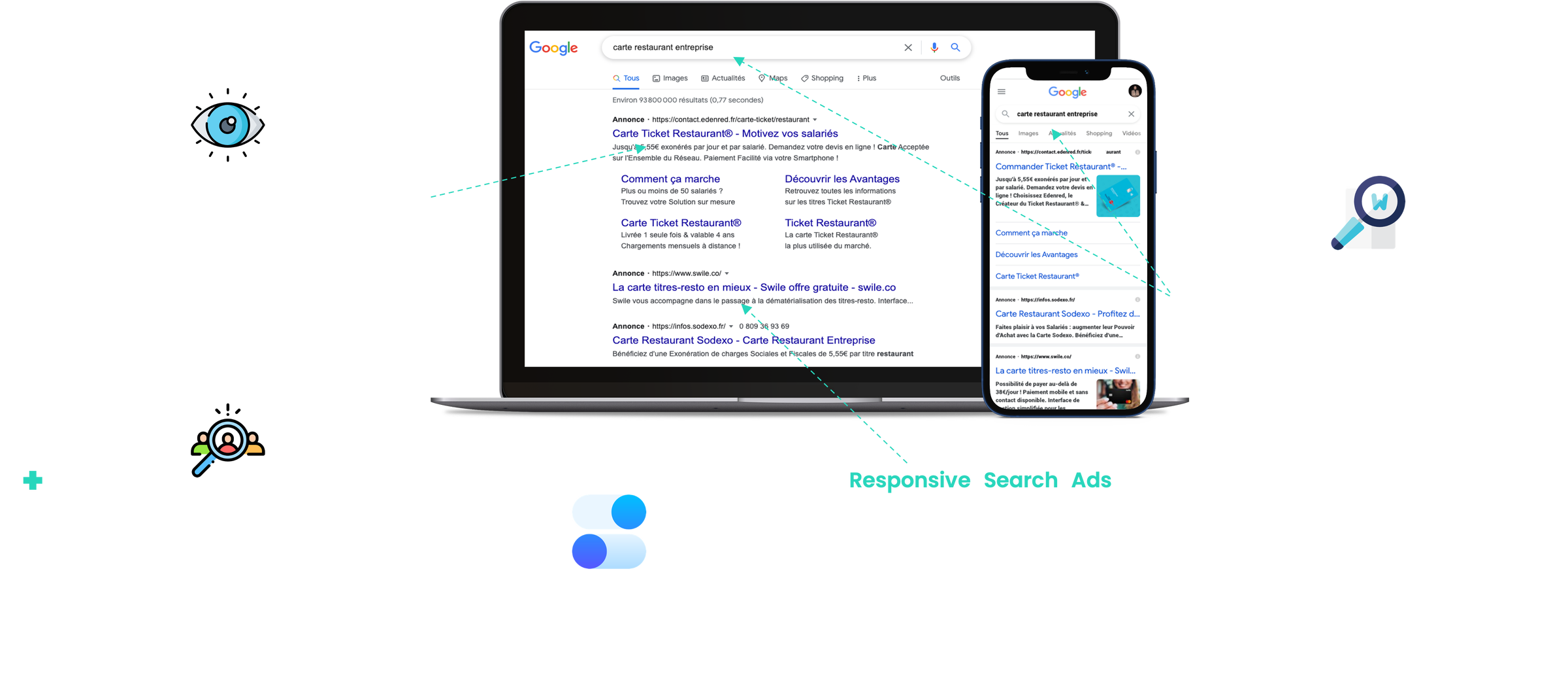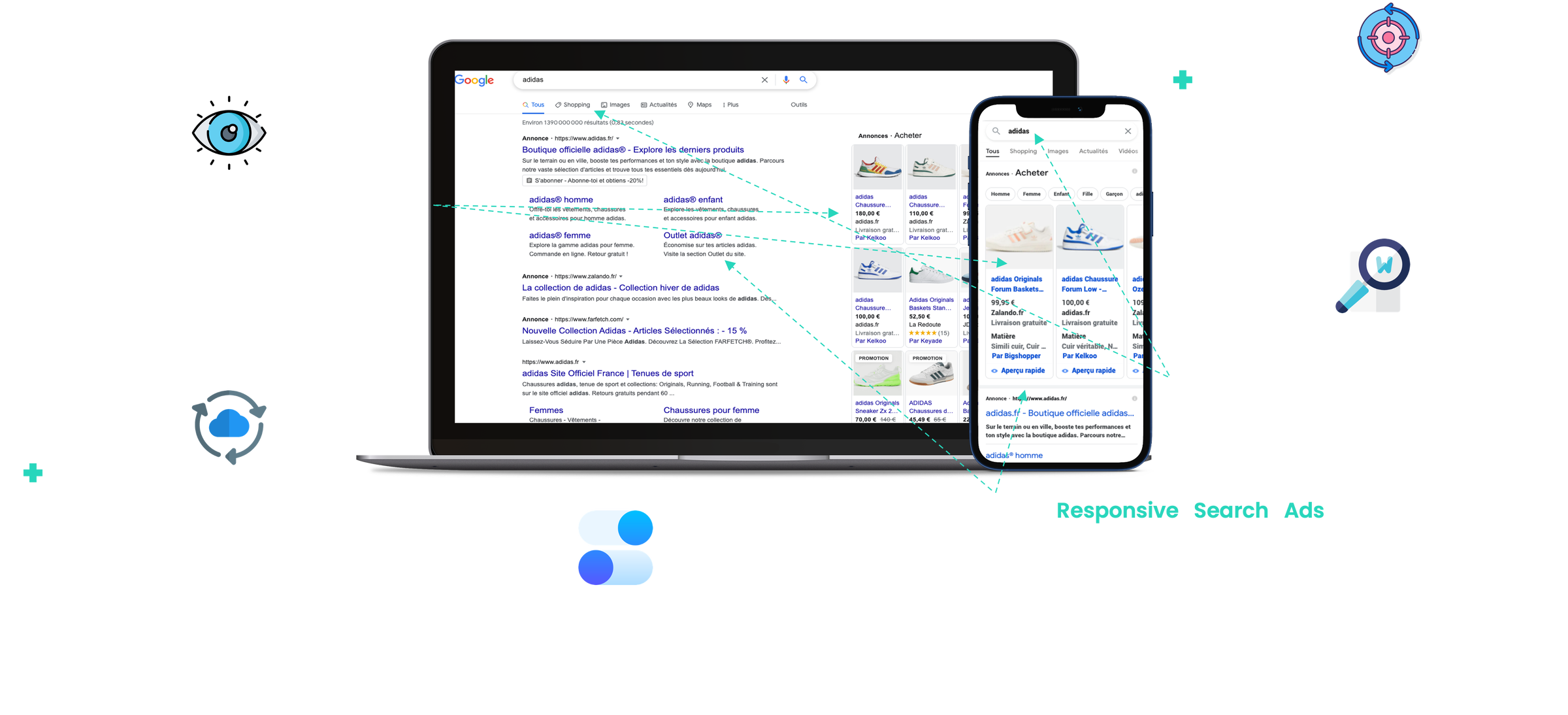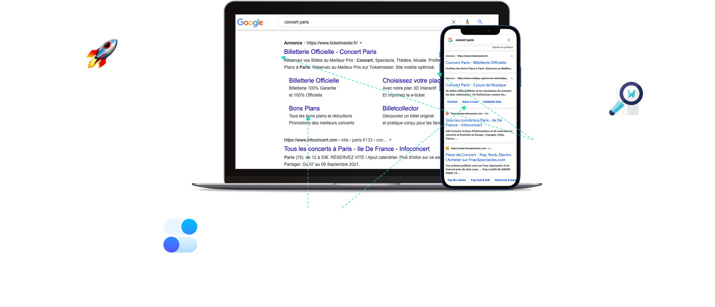 Faites apparaitre vos produits et/ou services au moment où les utilisateurs sont le plus susceptibles de s’informer sur ce qu'il les intéresse.